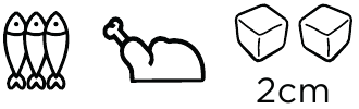 | P | 10 | 4-5 cubes 80-100g (4-5 cubos 80-100g) | |