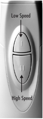 Mantenga presionado el botón apropiado para encender la batidora. Suelte el botón para apagar la unidad. Use la velocidad lenta siempre que sea posible, especialmente cuando comience a batir o si está suavizando grumos o reduciendo la comida a un puré. La alta velocidad se puede usar como un toque final o cuando se necesita una mezcla particularmente fina.