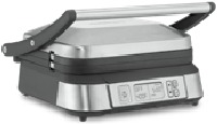 La Smoke-less Contact Griddler fue diseñada con un mango y una bisagra únicos que permiten que la tapa se ajuste al grosor de los alimentos. Puede asar fácilmente cualquier cosa, desde una papa en rodajas finas hasta un filete de solomillo grueso con resultados uniformes.