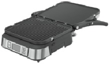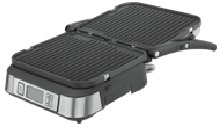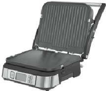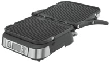 La Smoke-less Contact Griddler es el mejor electrodoméstico de cocina, que le ofrece siete opciones de cocción separadas. Simplemente dé la vuelta a los platos de cocción reversibles y ajuste la bisagra para usarla como una parrilla de contacto, prensa para panini, parrilla completa, plancha completa, mitad parrilla/mitad plancha o parrilla sin humo con controles de temperatura independientes. Consulte las Instrucciones de montaje y las Instrucciones de funcionamiento.