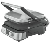Cuando la Smoke-less Contact Griddler se usa como una prensa para panini, se recomienda el lado de la parrilla de ambos platos. Recomendamos el lado de la parrilla de los platos porque los sándwiches panini de estilo tradicional tienen marcas de parrilla en el pan. Sin embargo, dependiendo del tipo de sándwich que esté preparando, es posible que desee usar el lado de la plancha de los platos o cualquier combinación de los dos. La Smoke-less Contact Griddler® funciona como una prensa para panini de la misma manera que funciona como una parrilla de contacto. La Smoke-less Contact Griddler® fue diseñada con un mango y una bisagra únicos que permiten que la tapa se ajuste al grosor del sándwich que está preparando y que descanse allí uniformemente. Se puede aplicar una ligera presión al mango para presionar y calentar el sándwich a su gusto.