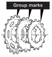- Siempre asegúrese de usar el juego de piñones que lleve las mismas marcas de grupo. Nunca lo use en combinación con un piñón que lleve una marca de grupo diferente.