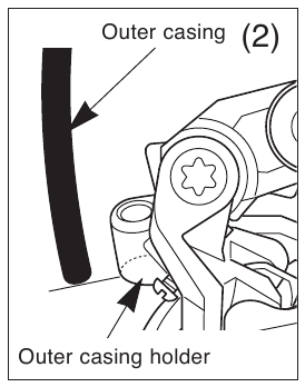 Al cambiar la configuración del convertidor de modo, particularmente al cambiar la bicicleta de especificaciones de montaña a descenso, la funda exterior puede acortarse. Si esto sucede, afectará las características de cambio, así que reajuste la longitud de la funda exterior.