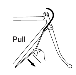 Conecte el cable al desviador trasero y, después de recoger la holgura inicial en el cable, vuelva a fijarlo al desviador delantero como se muestra en la ilustración.