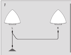 Si conecta los altavoces a, por ejemplo, un sistema de audio o video que no sea de Bang & Olusen con conexiones separadas para los canales de sonido izquierdo y derecho, realice las conexiones como se muestra en la fig. 2.