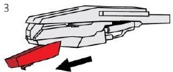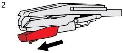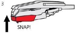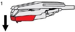 - Inserte la aguja con su extremo frontal en un ángulo descendente y levante suavemente la parte frontal de la aguja hacia arriba hasta que encaje en su lugar.