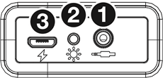 - Indicador de batería/carga: Estos 4 LED indicarán el nivel actual de la batería. Cuando los 4 LED están encendidos, Slam Jam tiene entre 70 y 100% de duración de la batería. Cuando el primer LED parpadea lentamente, Slam Jam tiene poca batería, menos del 10%. Conecte el cable USB incluido desde el puerto micro USB a una computadora o cargador de teléfono para recargar la batería. El primer LED parpadeará rápidamente durante la carga. Los 4 LED se encenderán cuando Slam Jam esté completamente cargado.