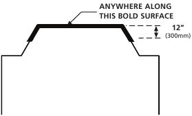 - A menos de 4" (10 cm) del pico de un techo tipo "A".