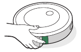 - Apague la batería retirando el robot de la estación de carga y manteniendo presionado el botón "clean" (limpiar) durante 3 segundos con una rueda fuera del suelo. Todos los indicadores se apagarán.