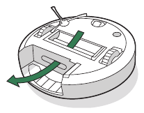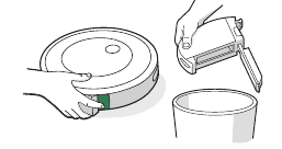 - Retire el depósito del robot y retire cualquier residuo de la trayectoria de la aspiradora.