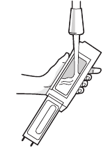 - Retire la tapa de absorción tirando de la lengüeta de goma lateral.