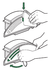 - Retire el depósito. Retire el filtro sujetando ambos extremos y tirando hacia afuera.
