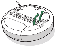 - Retire los cepillos del robot. Retire las tapas de los cepillos de los extremos de los cepillos. Retire cualquier cabello o residuo que se haya acumulado debajo de las tapas. Vuelva a instalar las tapas de los cepillos.