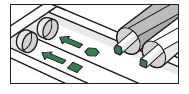 - Retire cualquier cabello o residuo de las clavijas cuadradas y hexagonales en el lado opuesto de los cepillos.