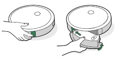 - Vuelva a instalar los cepillos en el robot. Haga coincidir la forma de las clavijas del cepillo con la forma de los iconos del cepillo en el módulo del cabezal de limpieza