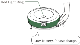 - Su robot le dirá que algo anda mal emitiendo una alerta de audio y encendiendo el indicador del anillo de luz en rojo. Presione el botón "clean" (limpiar) o toque el parachoques para obtener más detalles. Consulte la app iRobot Home para obtener más ayuda.