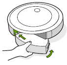- Vuelva a insertar el filtro con las empuñaduras estriadas hacia afuera. Vuelva a colocar el depósito en el robot.