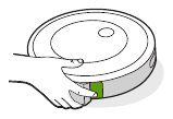 - Apague la batería retirando el robot de la estación de carga y manteniendo presionado el botón "clean" (limpiar) durante 3 segundos con una rueda fuera del suelo. Todos los indicadores se apagarán.