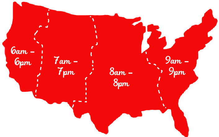 Nuestro equipo de atención al cliente con sede en EE. UU. está a su servicio de lunes a viernes durante los siguientes horarios.