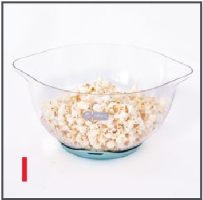 NOTA: NO agarre directamente el tazón transparente o la superficie de cocción, ya que ambos estarán calientes después de cocinar. ¡Use guantes de cocina si lo desea para mayor seguridad! - Retire la base y sirva (foto I). Asegúrese de abrir la máquina para hacer palomitas de maíz para que el vapor escape lejos de usted, ya que el vapor estará caliente. Use guantes de cocina o una toalla.