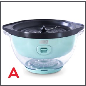 - Agregue los granos a la superficie de cocción (foto C). Agregue el tazón transparente a la base de la máquina para hacer palomitas de maíz.