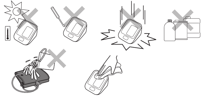 - No aplique golpes fuertes ni vibraciones ni deje caer la unidad y el manguito del brazo.