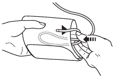 - Doble suavemente el tubo de aire en el manguito del brazo.