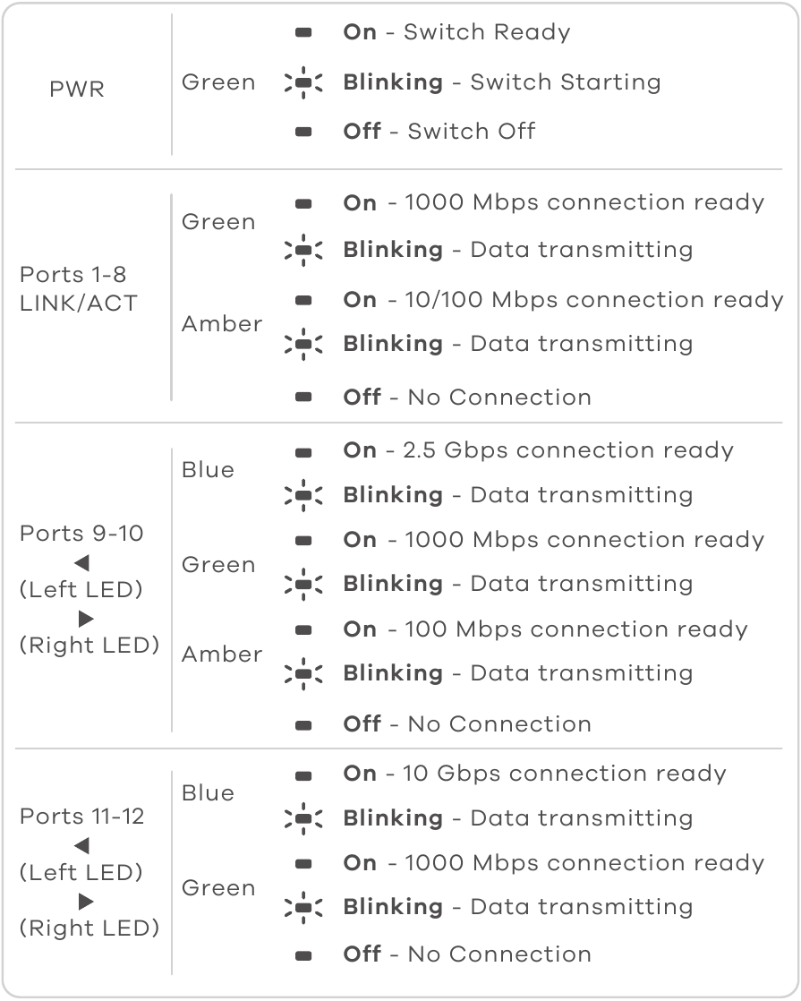 La luz PWR parpadea inicialmente. Espere a que la luz PWR se encienda de forma fija, lo que indica que el Switch está listo para usarse.