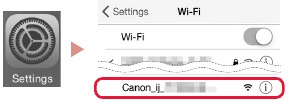 - Abra la configuración de Wi-Fi de su smartphone. Toque el nombre de la red (SSID) que comienza con "Canon_ij_".