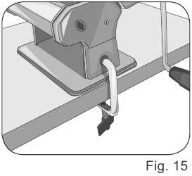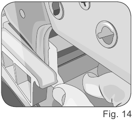 - Desenganche el soporte abriendo el lado interior (Fig. 14). Extraiga el soporte del lado de la base.