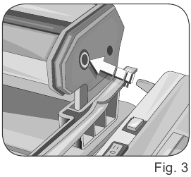 - Sujete el aparato con una mano y, con la otra, empuje el motor para insertar la lengüeta de soporte en el soporte (Fig. 5). Empuje con firmeza (Fig. 6).