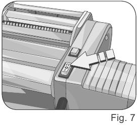 - Asegúrese de que el interruptor de encendido/apagado esté en la posición "0" (Fig. 7). Introduzca el enchufe en una toma de corriente.