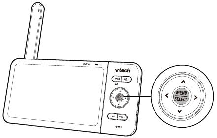 - Pulsa MENU (MENÚ) cuando la unidad para padres esté inactiva.