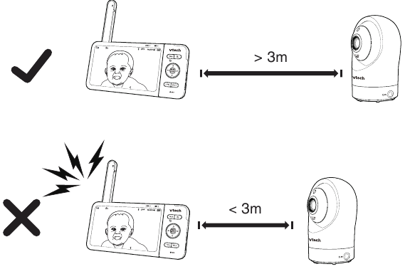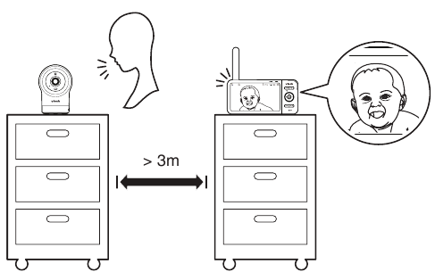 ![VTech - RM5764HD - Test the location for the baby unit Prueba la ubicación de la unidad para bebés]()