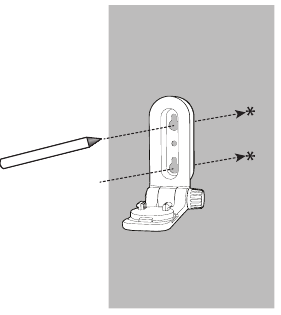 - Coloca el soporte de montaje en la pared sobre una pared y luego usa un lápiz para marcar dos agujeros en paralelo. Retira el soporte de montaje en la pared y taladra dos agujeros en la pared (broca de 7/32 pulgadas).