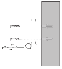 Alinea el soporte de montaje en la pared y los tornillos con los agujeros en la pared como se muestra. Aprieta los tornillos primero en el agujero central, de modo que la posición del soporte de montaje en la pared quede fija. Puedes apretar el otro tornillo en el agujero superior.