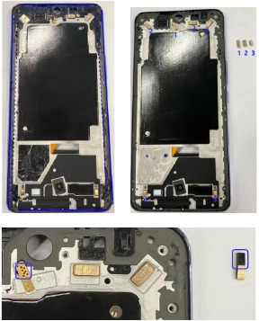 | Después del montaje, calibre las cámaras traseras, el escáner de huellas dactilares en pantalla, el sensor de proximidad de infrarrojos y el sensor de luz ambiental como se especifica en la sección "Actualización de software y herramientas de software". | |