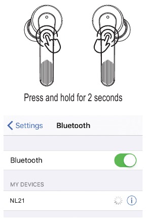 - Los auriculares no se pueden emparejar entre sí o sólo funciona un auricular. Si los auriculares están actualmente o ya han estado conectados a un dispositivo Bluetooth, haga clic en "forget" (olvidar) o "unpair" (desemparejar) "NL21" en la configuración de Bluetooth de su dispositivo. A continuación, coloque los auriculares en el estuche de carga, enchufe el cable de carga para cargar los auriculares, y luego mantenga pulsado el panel táctil durante 5 segundos, la luz azul parpadea una vez para borrar el registro de emparejamiento Bluetooth.