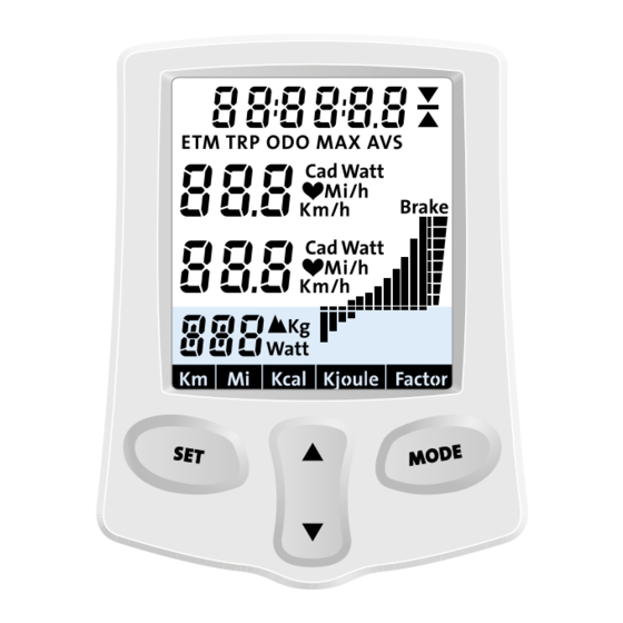 Cuando no esté pedaleando, puede restablecer la información de entrenamiento ETM, TRP, MAX y AVS pulsando las teclas SET y MODE al mismo tiempo durante 2 segundos. No es posible restablecer el ODO (el número total de kilómetros recorridos en el rodillo). Una vez que haya alcanzado los 99.999 km, se restablecerá automáticamente a 0 km (o millas). Todos los datos del viaje también se restablecen cuando se apaga el ordenador Flow. Cuando se reinicia el ordenador, todo vuelve a 0, excepto el ODO.
