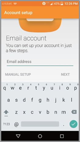 . - Selecciona un tipo de cuenta, introduce tu dirección de correo electrónico y contraseña, luego toca Siguiente (Next)
