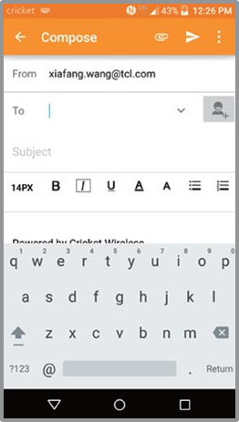. - Toca el campo Para e introduce la dirección de correo electrónico o el nombre o toca Contactos (Contacts)