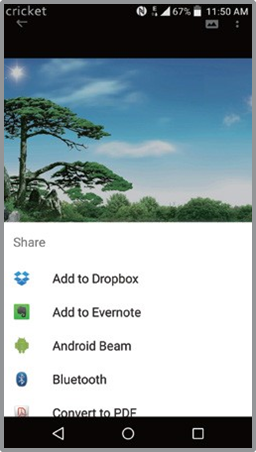 . - Desplázate por las opciones para enviar a través de mensajes de texto o correo electrónico, Evernote y mucho más. ®