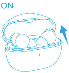 - Abra el estuche de carga, los auriculares se encenderán automáticamente.