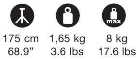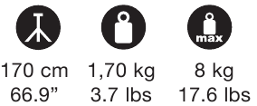 Para uso en exteriores, especialmente en condiciones de viento, es posible estabilizar el trípode: enganche un contrapeso (no suministrado) en el anillo "L"