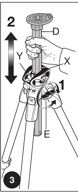Nota: El mejor bloqueo se logra girando la columna central "D" hasta alinear las partes "X", "Y" con la palanca de bloqueo "E" como se muestra en la figura 3.