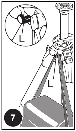 Cada pata se puede ajustar en 4 ángulos de apertura. Para cambiar el ángulo de una pata, cierre ligeramente la pata hacia la columna central y presione el botón de bloqueo "C" en la parte superior de la pata. Mientras mantiene presionado el botón, seleccione el nuevo ángulo de la pata y luego suelte el botón "C" para bloquearlo en su posición. El ángulo de cada pata se puede ajustar independientemente de las otras dos patas. La última posición permite alcanzar el nivel del suelo.