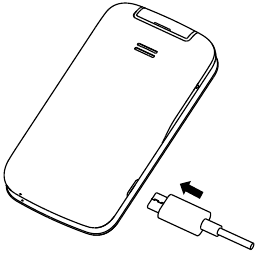 Inserte el extremo pequeño del cable de carga en el puerto de carga como se muestra y conecte el cargador a una toma de corriente.
