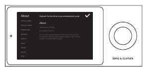 Retirar la tapa de la toma de corriente de BeoSound Moment le ofrece opciones adicionales. Una vez retirada la tapa, se muestra el menú de ajustes. Para volver al funcionamiento normal, vuelva a colocar la tapa de la toma de corriente.