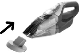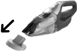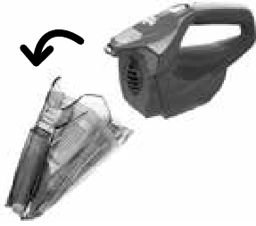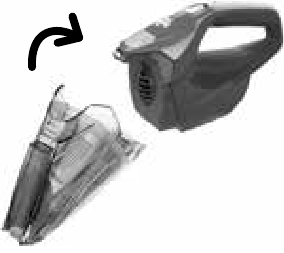 - Para guardar la herramienta para grietas: tire suavemente de la herramienta alejándola del depósito de polvo y levante la herramienta hacia la unidad y presione hacia abajo hasta que sienta que encaja en su lugar.