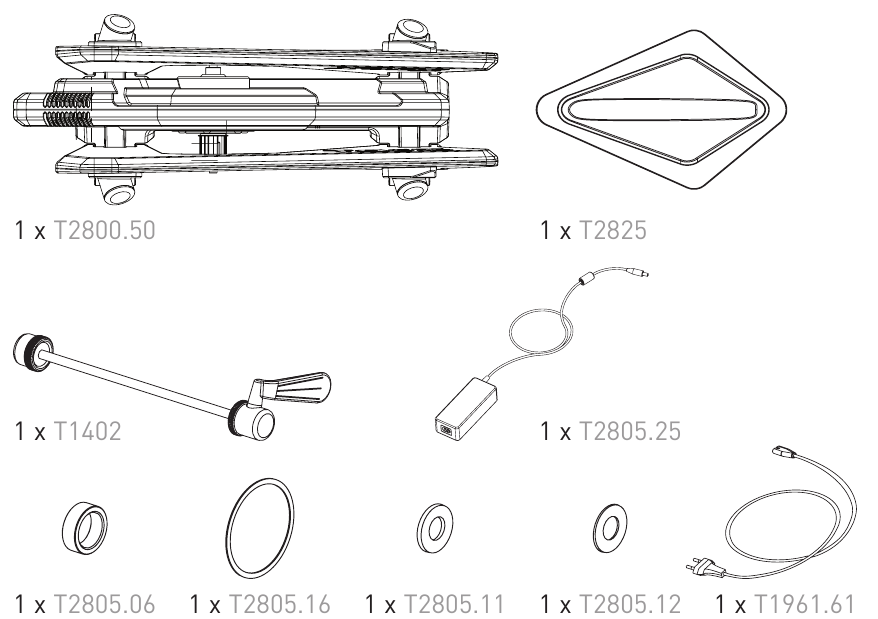 - Desliza los 2 espaciadores suministrados (T2805.11 y T2805.12) hacia la parte posterior del eje.